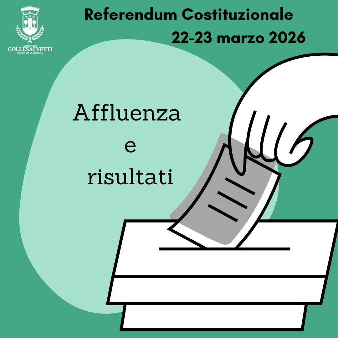NOTIZIA 22 Mar 26 Referendum costituzionale - affluenza e risultati Dettaglio dell'affluenza e dei risultati dalle sezioni del Comune di Collesalvetti Comunicazione istituzionale Elezioni