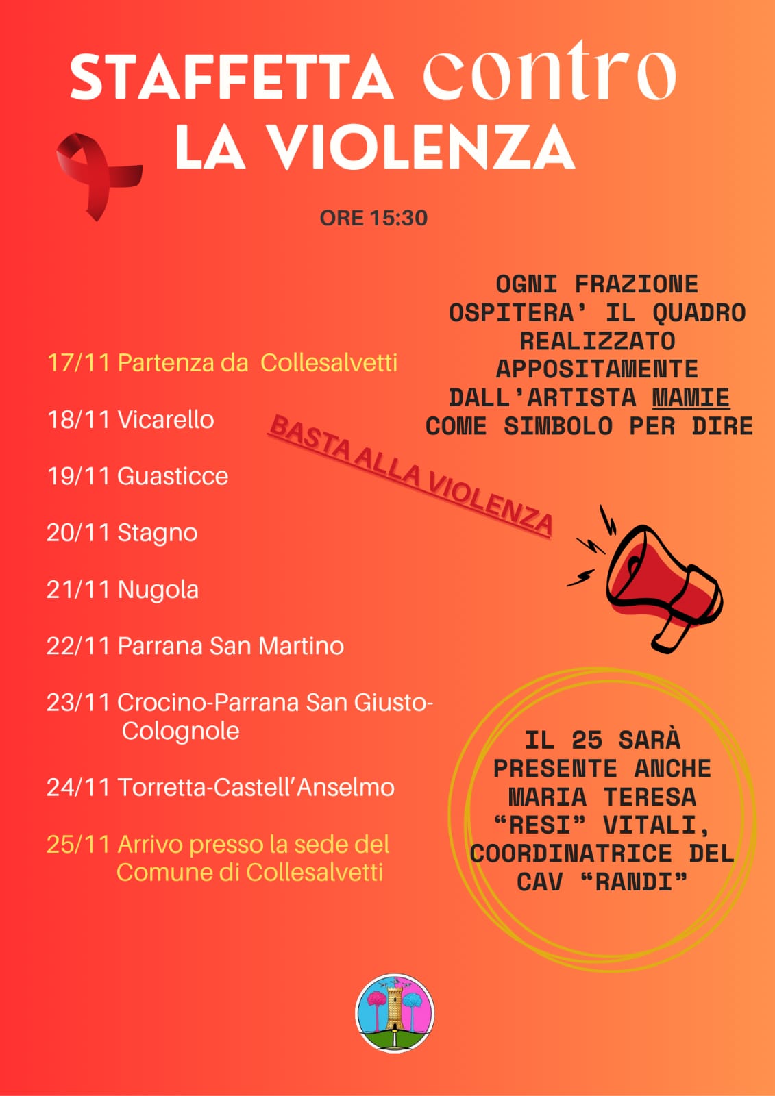 La staffetta partirà il 17 novembre da Collesalvetti e proseguirà secondo il seguente calendario: