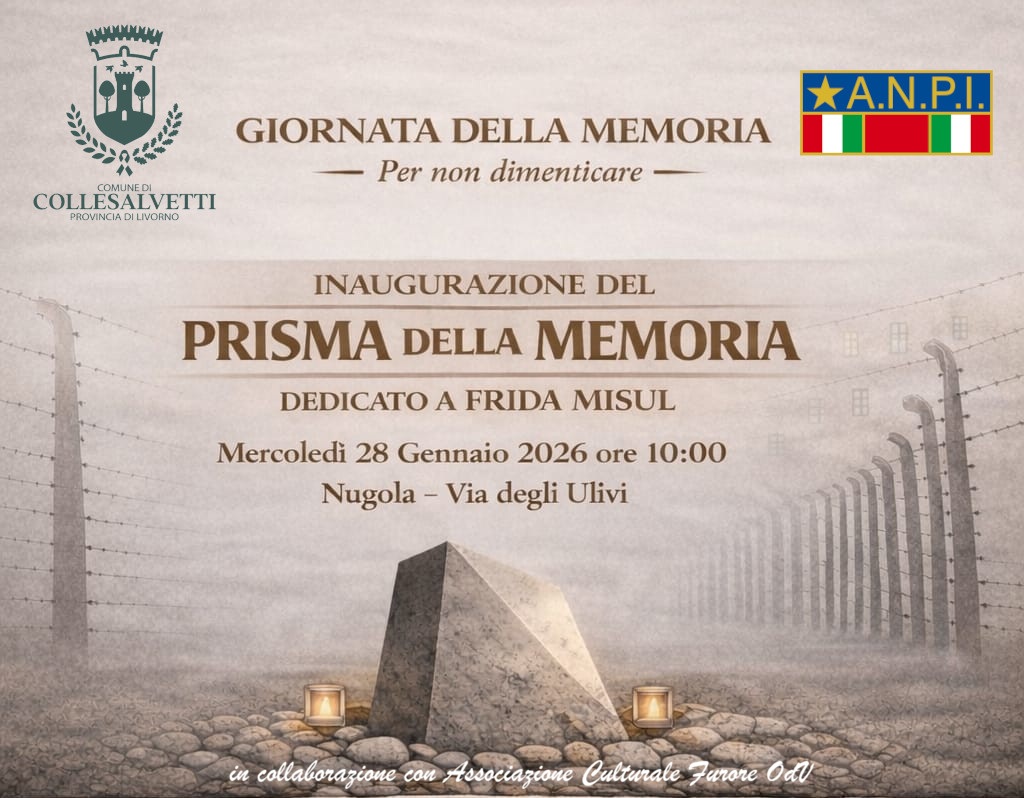 Mercoledì 28 gennaio, ore 10.00, a Nugola, in via degli Ulivi, con A.N.P.I. sezione di Collesalvetti e Furore OdV, sarà inaugurato un nuovo prisma dedicato alla memoria di Frida Misul.