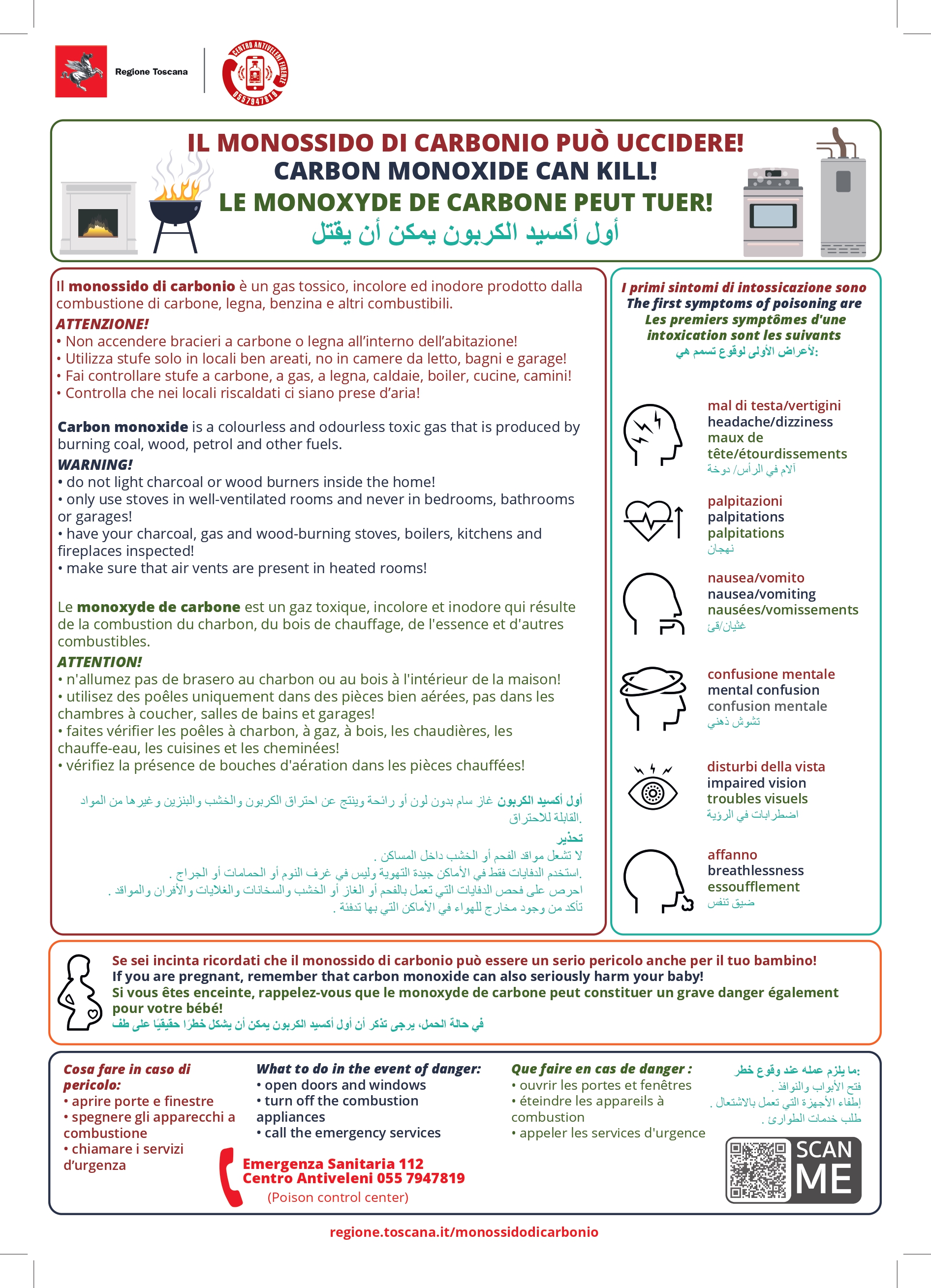 La locandina è disponibile anche al seguente link: regione.toscana.it/monossidodicarbonio.