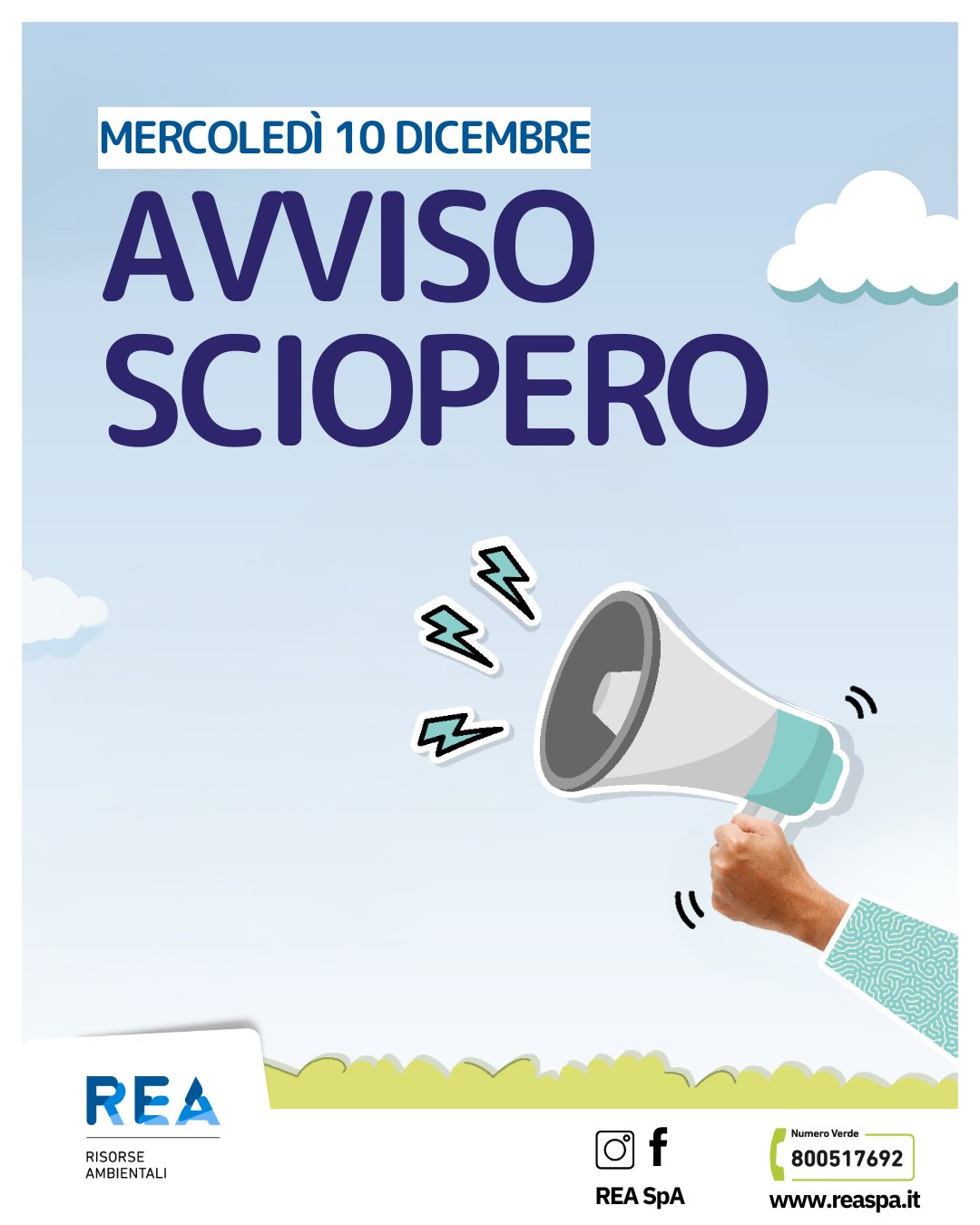 REA spa informa le utenze che le sigle sindacali FP-CGIL, FIT-CISL, UIL-TRASPORTI e FIADEL hanno indetto una giornata di sciopero nazionale per mercoledì 10 dicembre.