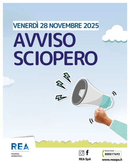 REA Spa informa che le Organizzazioni Sindacali ADL Cobas, CLAP, Confederazione Cobas, Sial Cobas e SGB hanno indetto uno sciopero nazionale per venerdรฌ 28 novembre 2025.