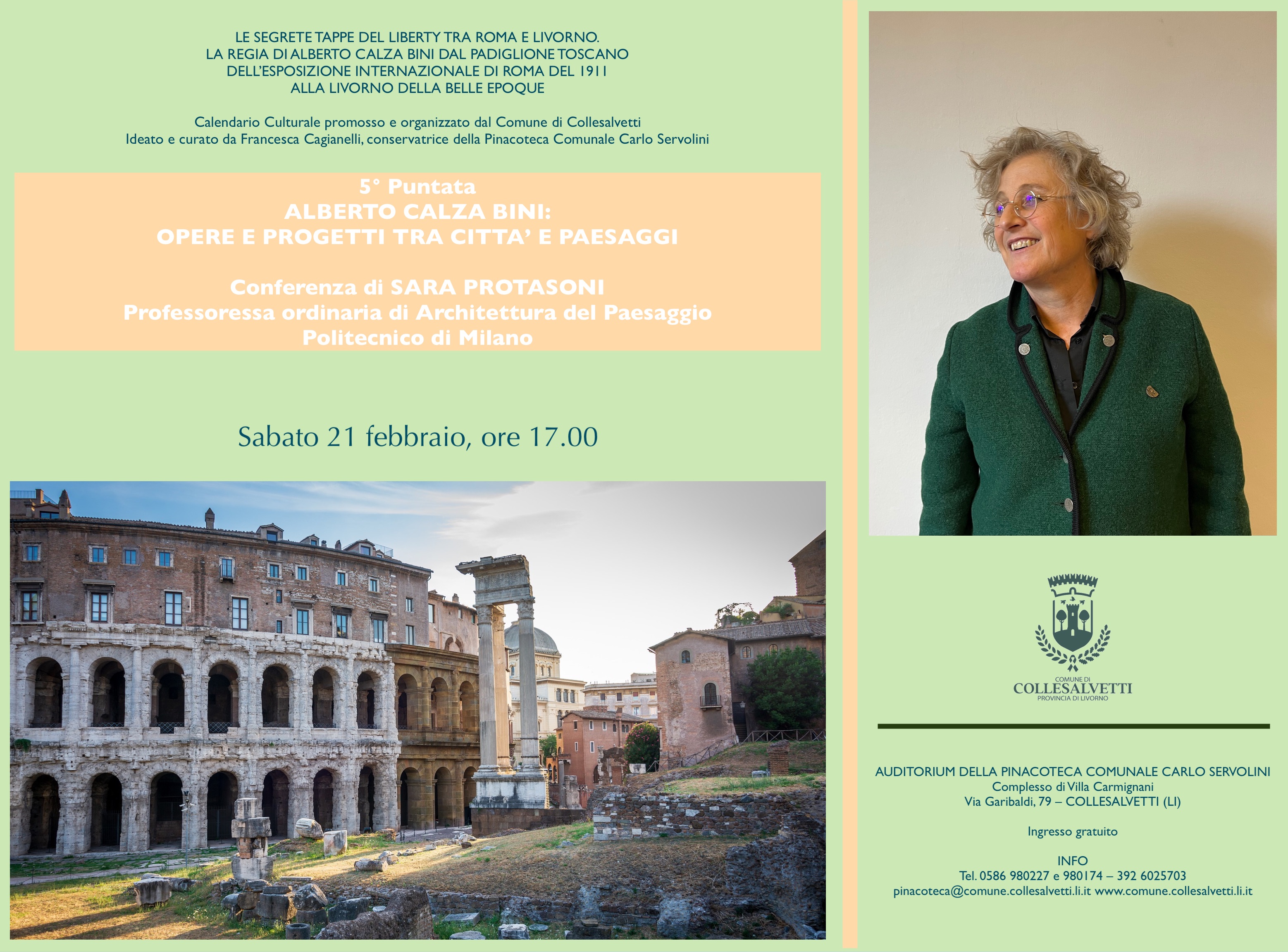 Il ciclo di incontri culturali della Pinacoteca Servolini prosegue con un appuntamento di grande prestigio, sabato 21 febbraio 2026, ore 17.00, che vedrà come protagonista Sara Protasoni, Professoressa ordinaria di Architettura del Paesaggio, Politecnico di Milano, che curerà la conferenza Calza Bini: Architettura, città e politica.