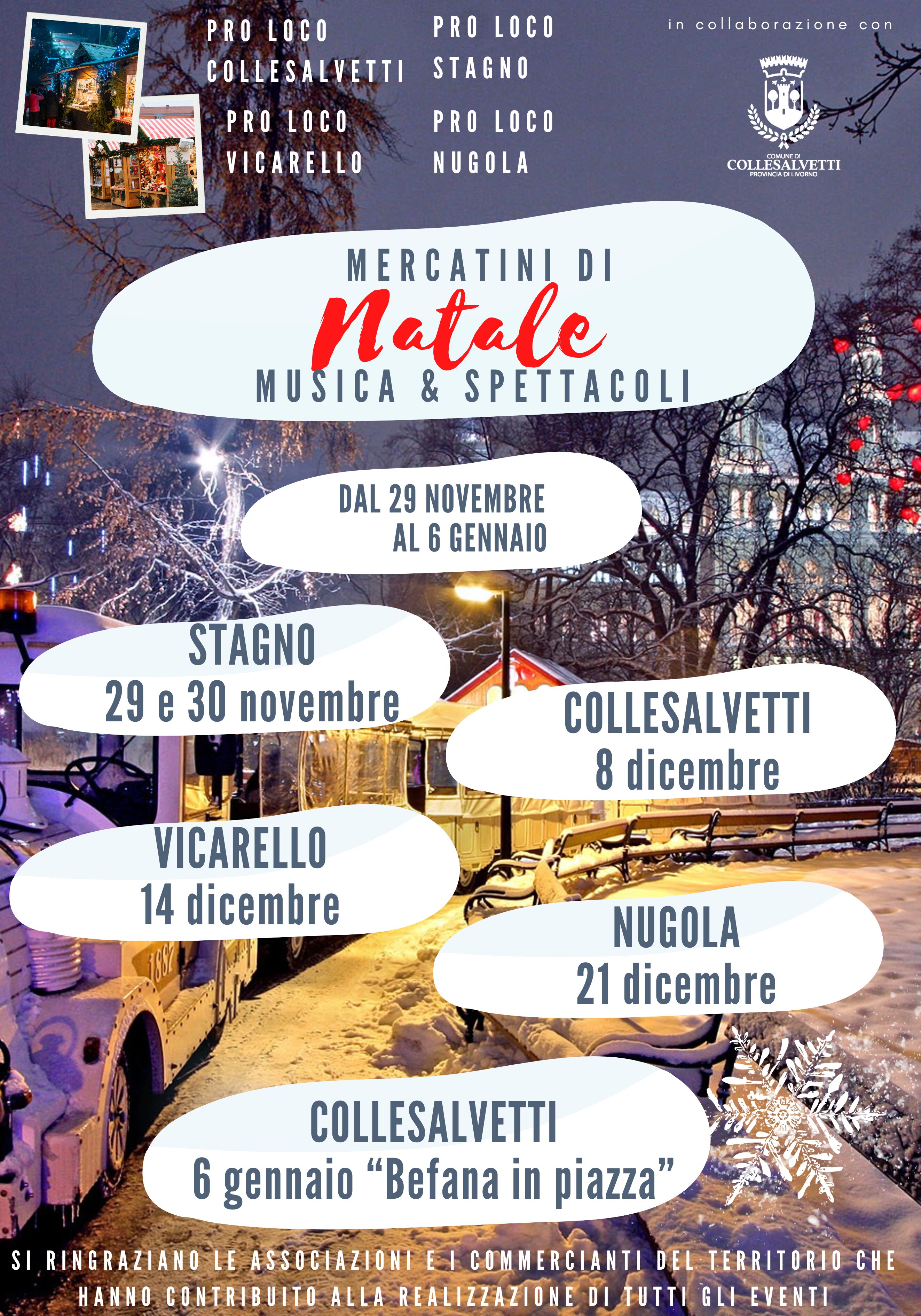 Le Pro Loco di Stagno Collesalvetti Vicarello e Nugola in collaborazione con il Comune di Collesalvetti, hanno organizzato i "Mercatini di Natale" in occasione delle festività natalizie, nelle varie frazioni del territorio.
