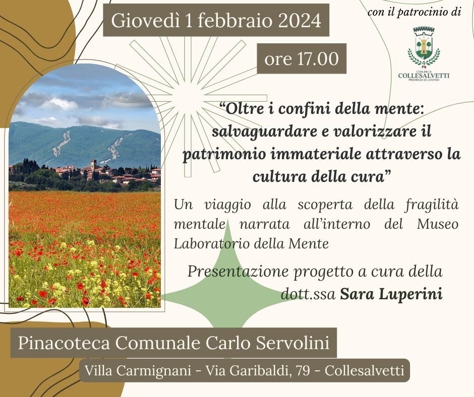 Il Festival della canzone dei matti di Maggiano, la storia di Marco Cavallo a Trieste, i progetti di inclusione messi in campo dalla Fondazione Casa Cardinal Maffi nelle scuole colligiane, costituiscono solo alcuni esempi che permetteranno al pubblico di scoprire il legame tra Collesalvetti e le tante storie custodite tra le mura di questi luoghi apparentemente così lontani dalla nostra quotidianità.
